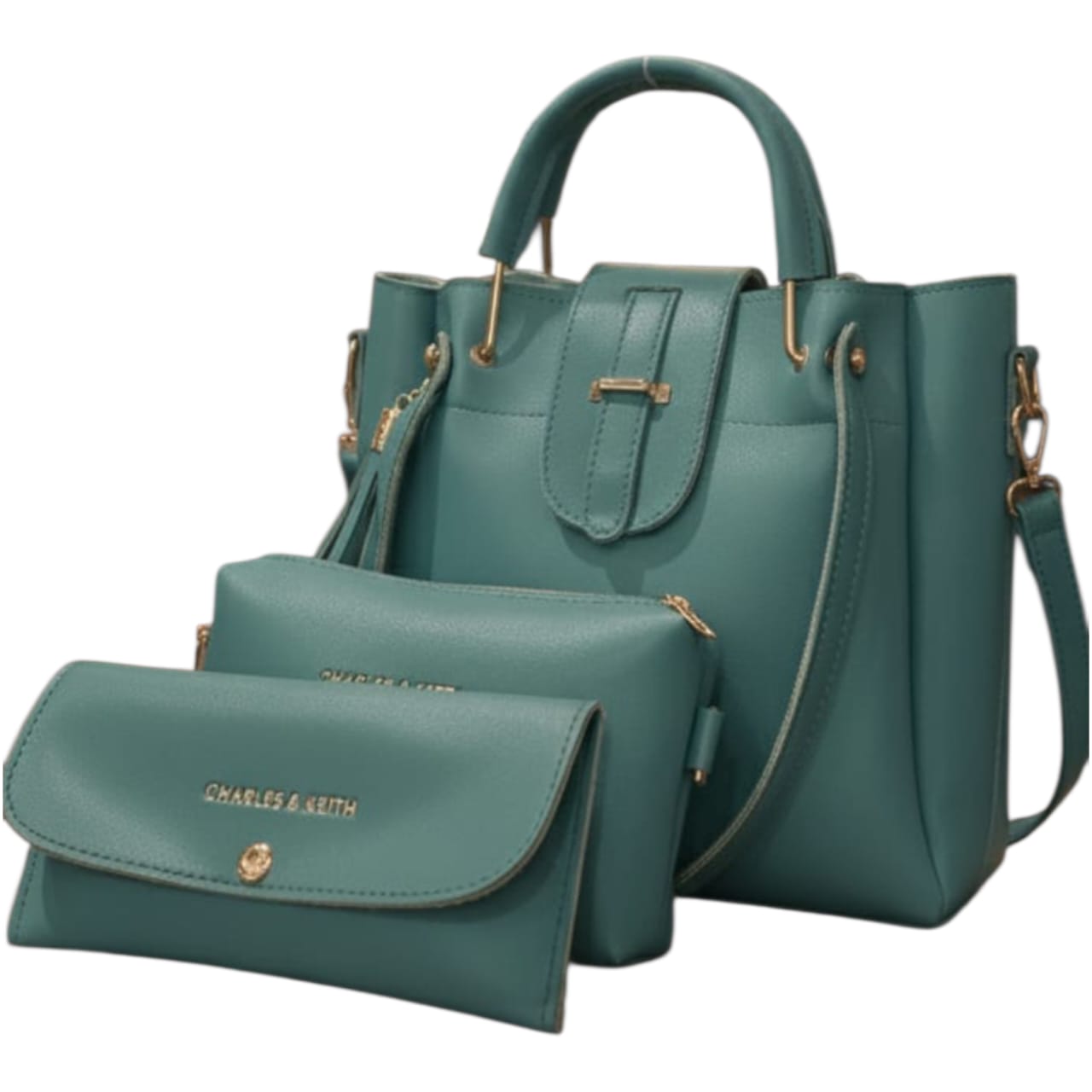 xMeet the Aura - 3 PCs Handbag Set | Olive Green
