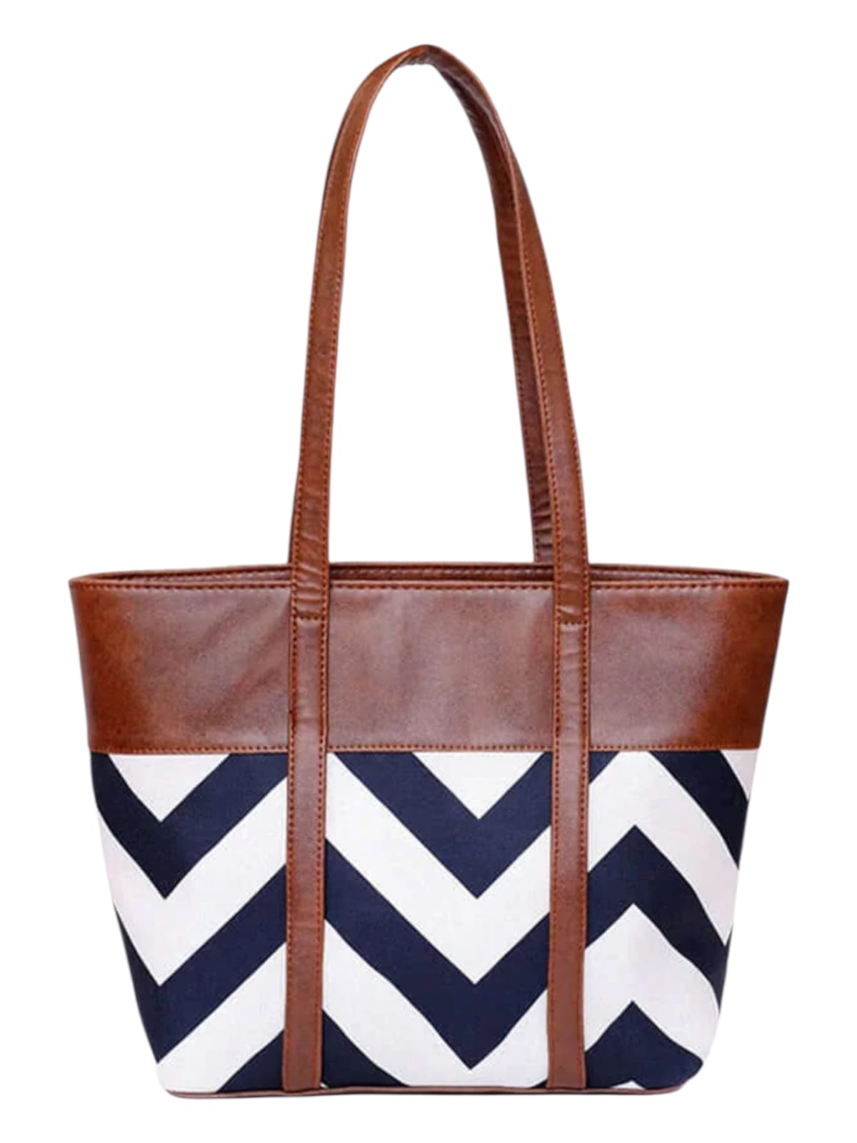 A striking blend of modern design and everyday elegance, this chevron-pattern tote bag is crafted to make a confident style statement. The bold black-and-white geometric pattern is balanced with a smooth black upper panel, creating a refined contrast that feels both contemporary and timeless. Designed with a structured yet lightweight silhouette, it offers generous space while maintaining a sleek, polished look—perfect for daily wear.
